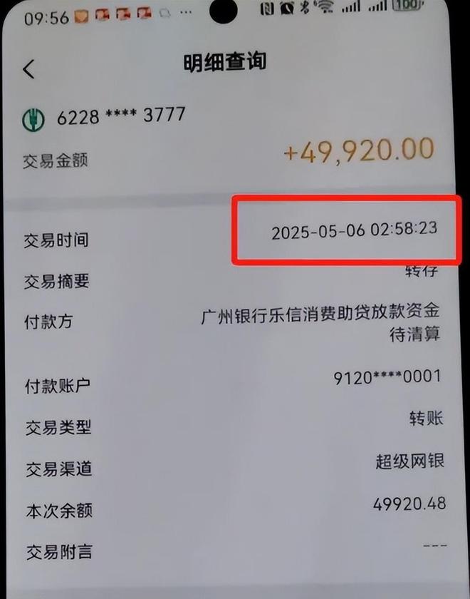 5月10日,小杨突然发现,自己一张没有存款的银行卡莫名其妙收到了一笔49920元的转账,“我打开手机银行一看,来款来源就是分期乐。”小杨还发现这笔贷款是在5月6日凌晨2点51分申请的,7分钟后打到了他的银行卡中。“但当时我在睡觉啊!谁会在大半夜申请贷款呢?”