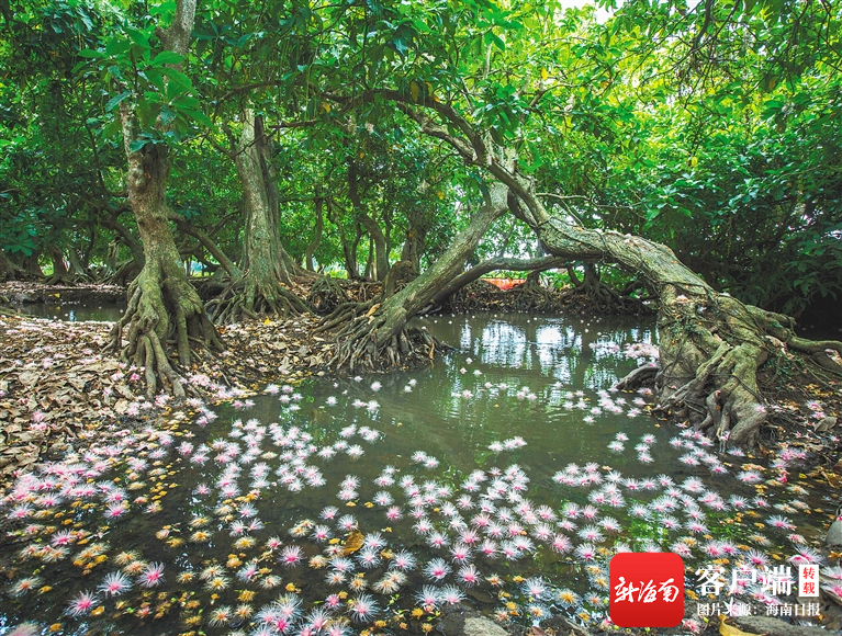 儋州市中和镇七里村位于北门江畔,是一个有着1300年历史的古老村庄。村里的玉蕊古树群是全国保留最为完好的玉蕊古树群之一,这片玉蕊林中的玉蕊树最长树龄约800年。玉蕊花只在夜间绽放,花香沁人,美不胜收。
