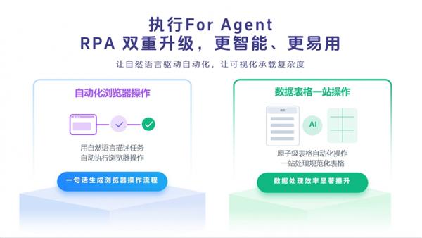 此次升级的核心亮点之一,是将Agent与RPA深度耦合,让“聪明的大脑”搭配“7×24小时不知疲倦的双手”,实现从理解到执行的无缝衔接。